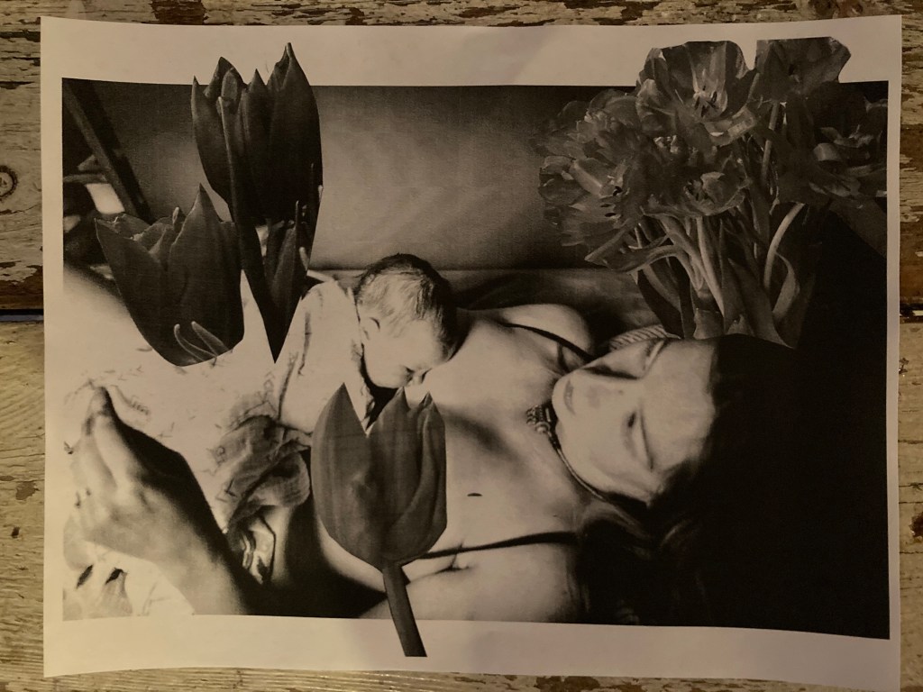 The prompt for today is Tulips, and that’s the first thing I thought of. I’ve never been wild about tulips, but as I get older I’m finding beauty in any living thing. Hostas, for example, a plant I used to hate, astound me now. There’s a little farm close to us called Seek No Further, and they forced tulips for Valentine’s Day. I’ve gotten tulips from them once before, last year, for my mother in law’s 79th birthday on April 11. Amidst a massive snowstorm they had tulips ready in April. My second daughter was born a month four days after my mother in law’s birthday. I pushed through frozen ground, through a previous cesarean, through a pandemic, and had her safely at home in the nest of our bed.