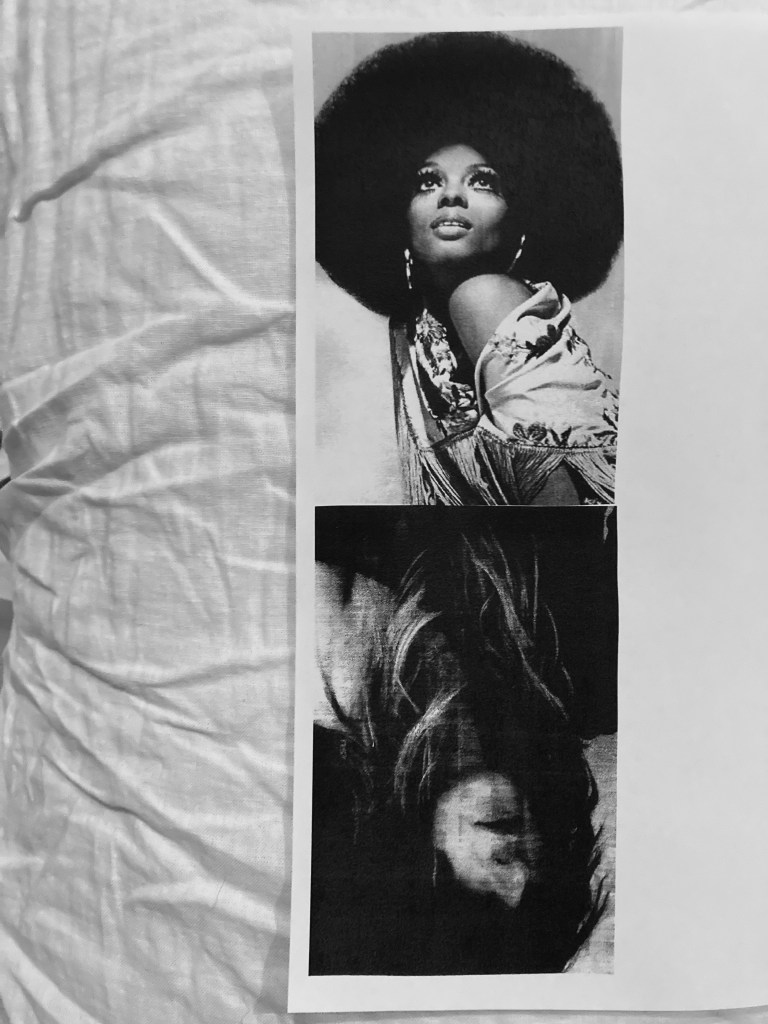 So I put together this image, working with that I have (as I’ve done with all the March Ensemble prompts), a printer/copier and some scissors. I like working within limits. I can’t worry too much about the quality of the print, because this printer/copier is all I have. I can’t worry about getting my picture to look exactly like Diana Ross’, because I’m working in bed before my children wake up. I can’t worry about making something too profound, I don’t want to overthink or take myself too seriously. Then again, I think all these works people have been making for March Ensemble are profound precisely because of the limits. Freedom Under Law, as an old friend of mine used to say. At the risk of sounding too sappy, March Ensemble has been life changing for me. It’s been something to open my brain, push me to make for the sake of making, think about things differently, experience a part of my brain and psyche I haven’t really tapped into for awhile. We’ve pushed through the waters of Pisces, into the fire of Aries throughout the ensemble. The symbol of the horns comes back to me, like the first piece I made for March Ensemble. Sick, sad song. Maybe if you turn a sick, sad song upside down you get a Diana Ross bop. The sign of the horns protects Diana Ross and I from the Evil Eye.